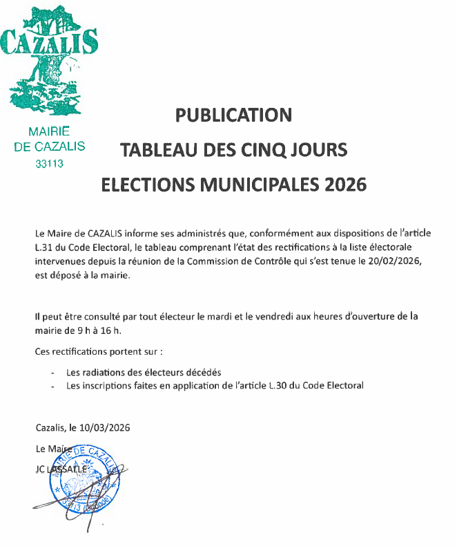Les citoyens européens résidant à Cazalis peuvent voter sur la liste complémentaire municipale.